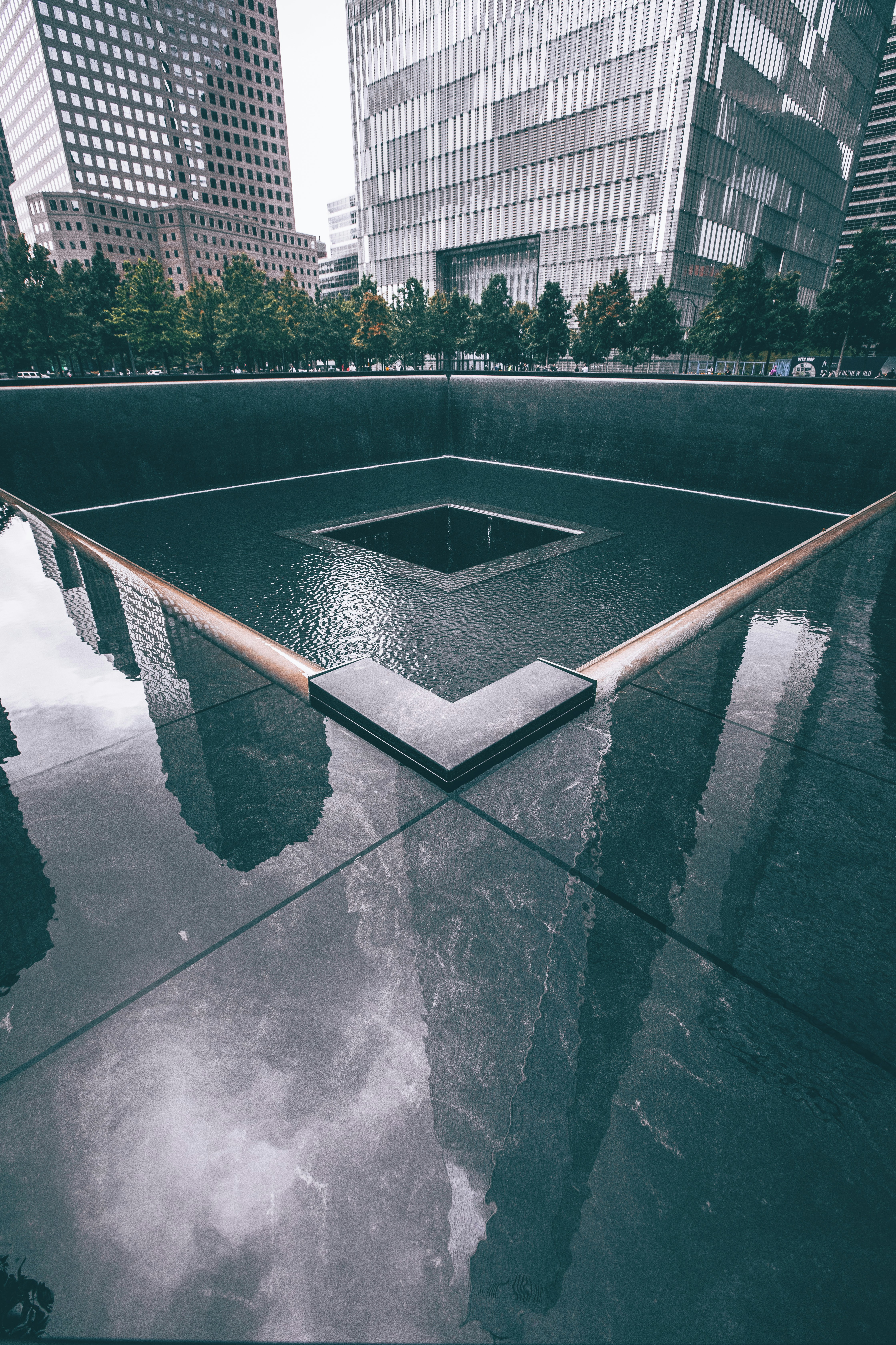 The Memorial features two massive reflecting pools, each set within the footprints of the Twin Towers. These pools, known as the North and South Pools, mark the exact locations where the towers once stood.